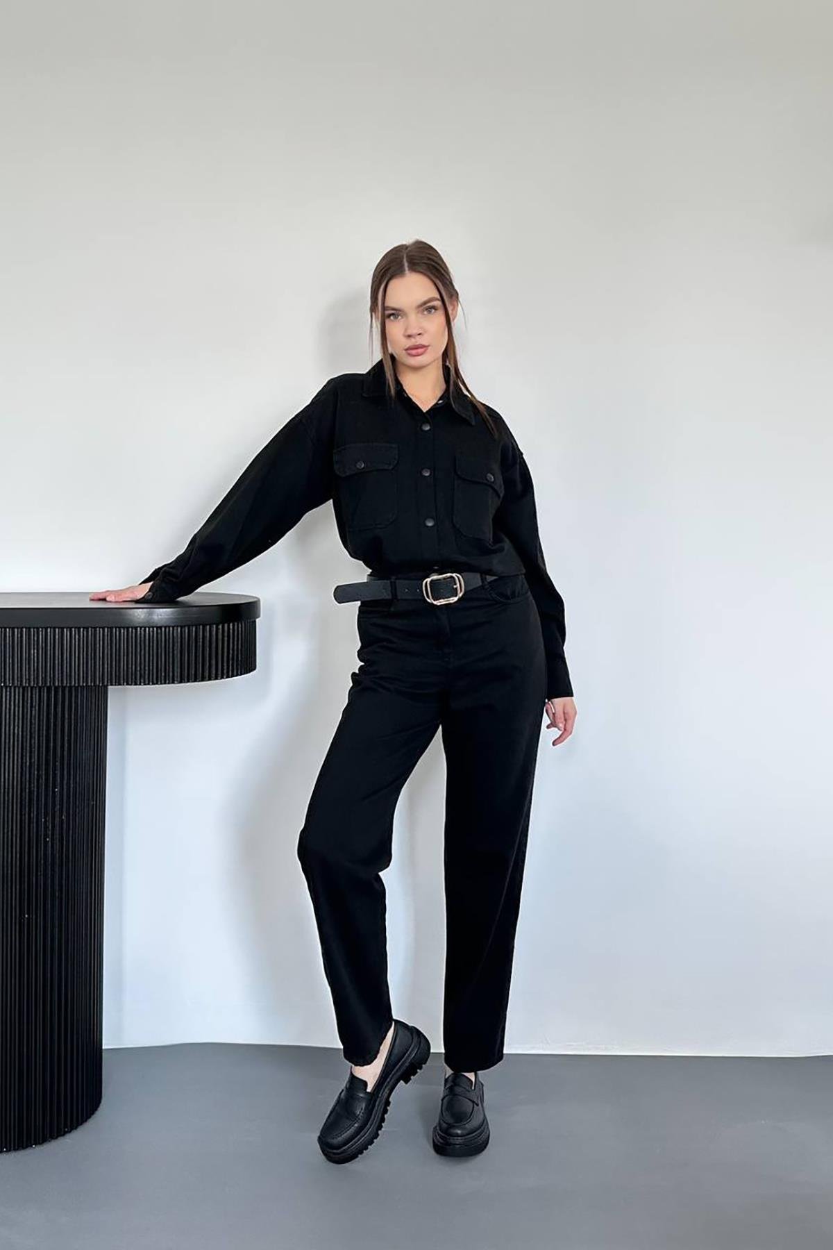 طقم قميص وبنطلون مغسول باللون الأسود للبيع بالجملة (6162)