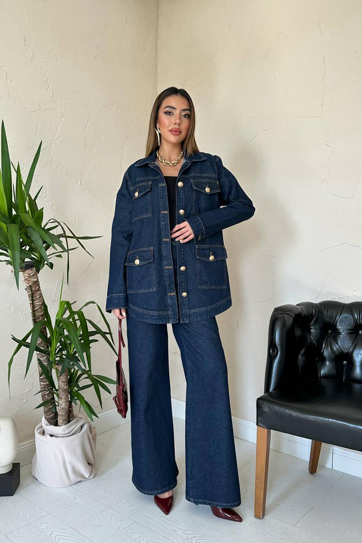 Toptan Lacivert Gold Düğmeli Pantolonlu Takım