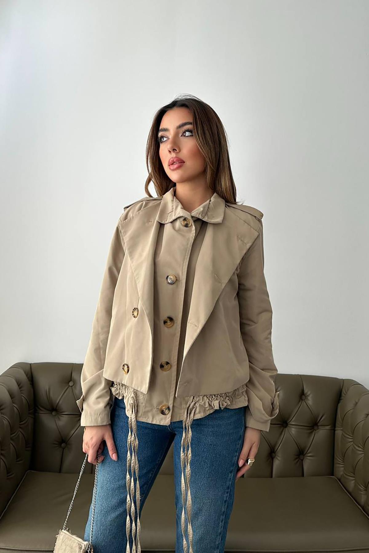 Toptan Açık Haki Çift Katlı Kısa Ceket