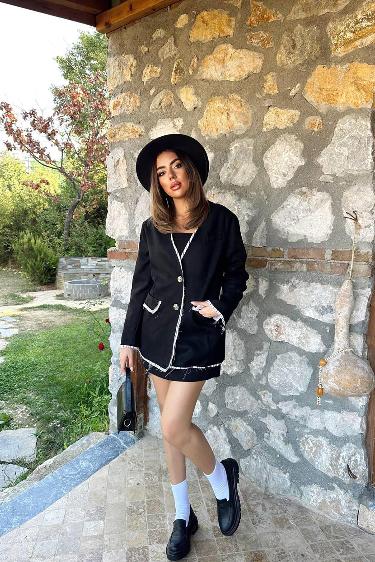 Toptan Siyah Çizgili Astarlı Garnili Süet Ceket