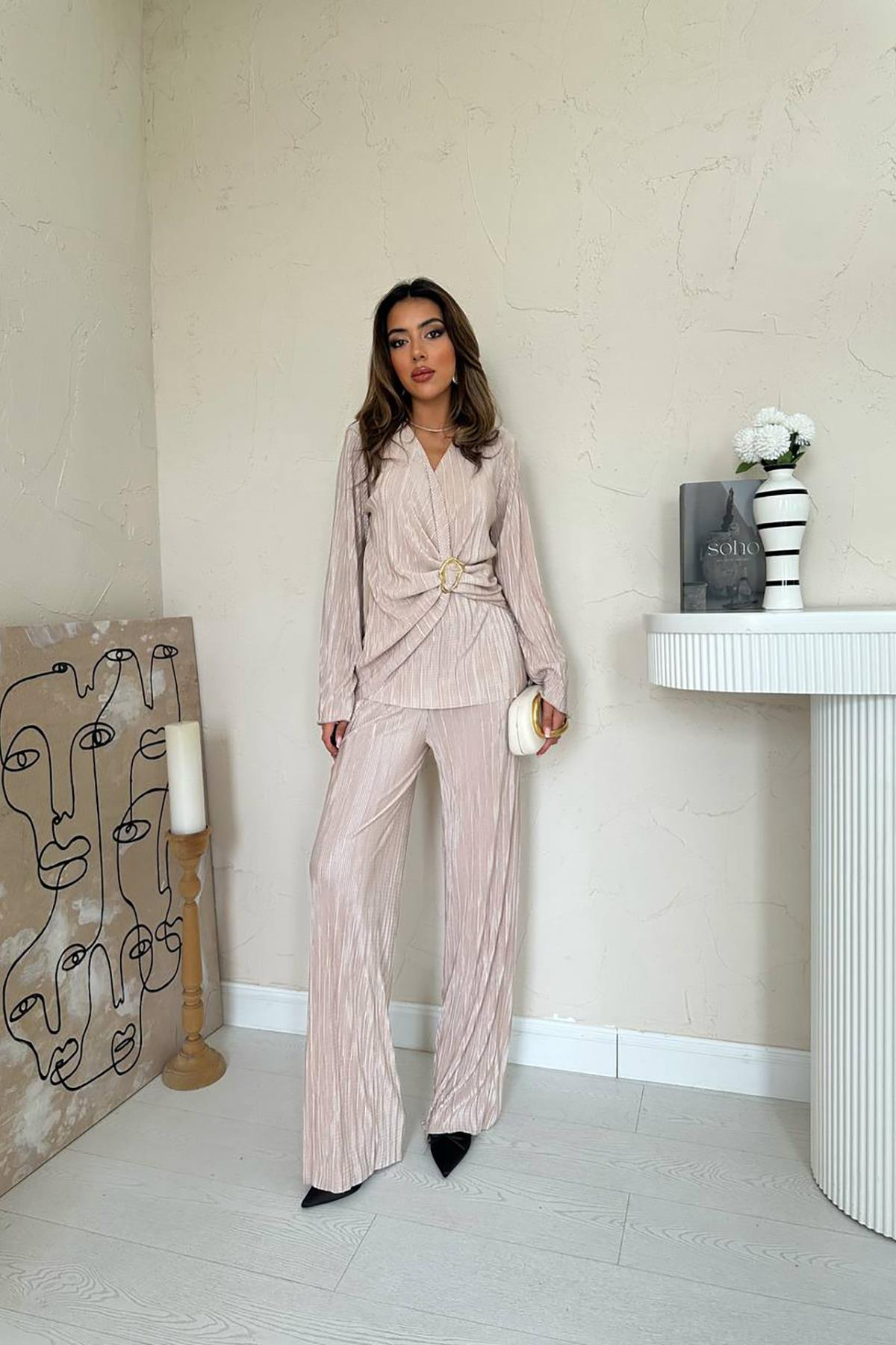 Wholesale Beige Buckle Detail Pleated Suit (9181)