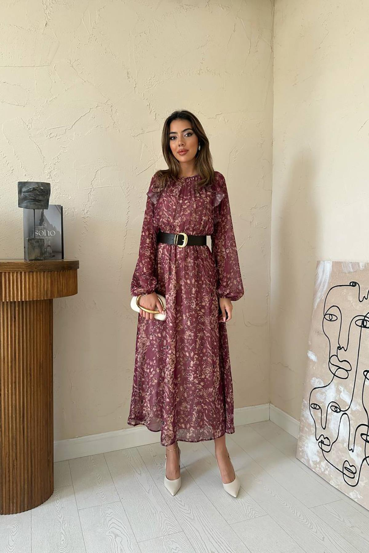 Wholesale Burgundy Ruffle Chiffon Dress (9164)