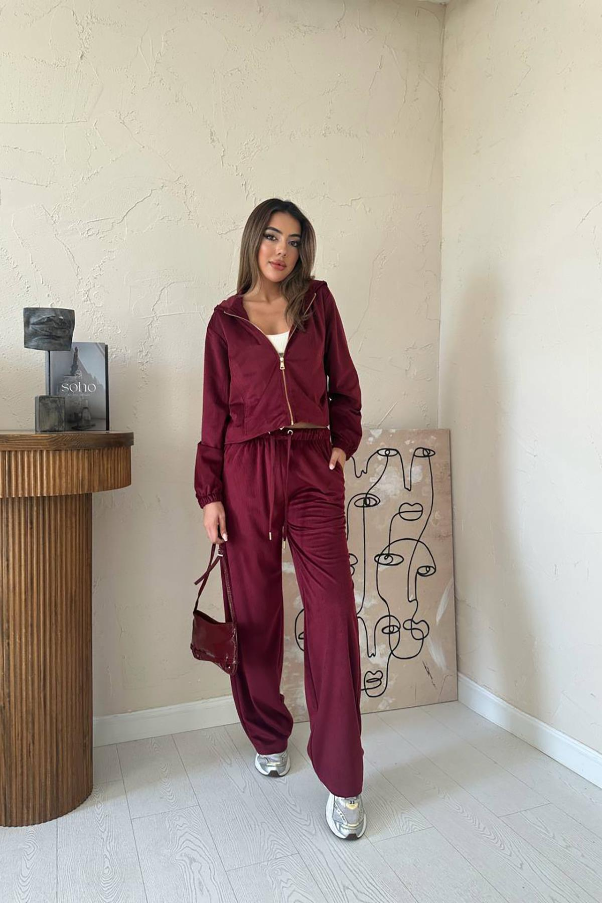 Wholesale Burgundy Thin Velvet Suit (9182)