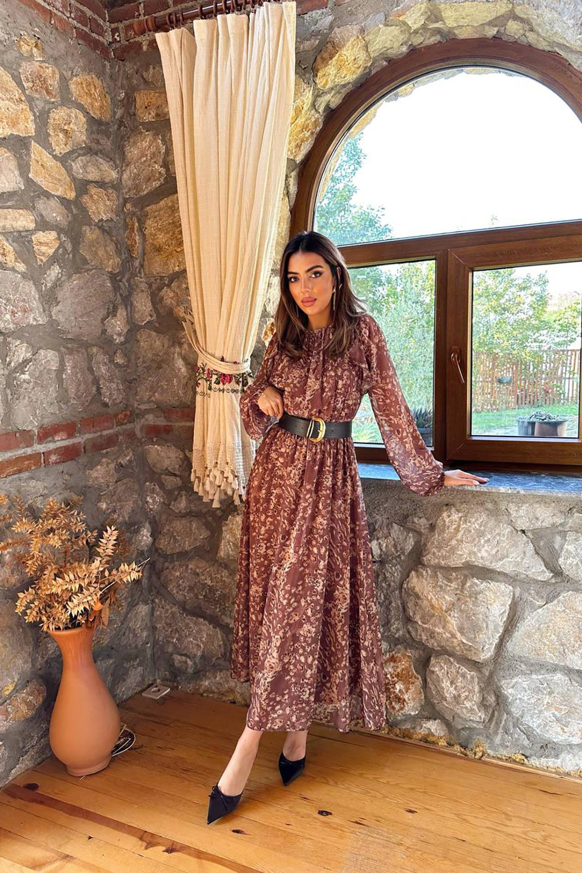 Wholesale Brown Ruffle Chiffon Dress (9164)