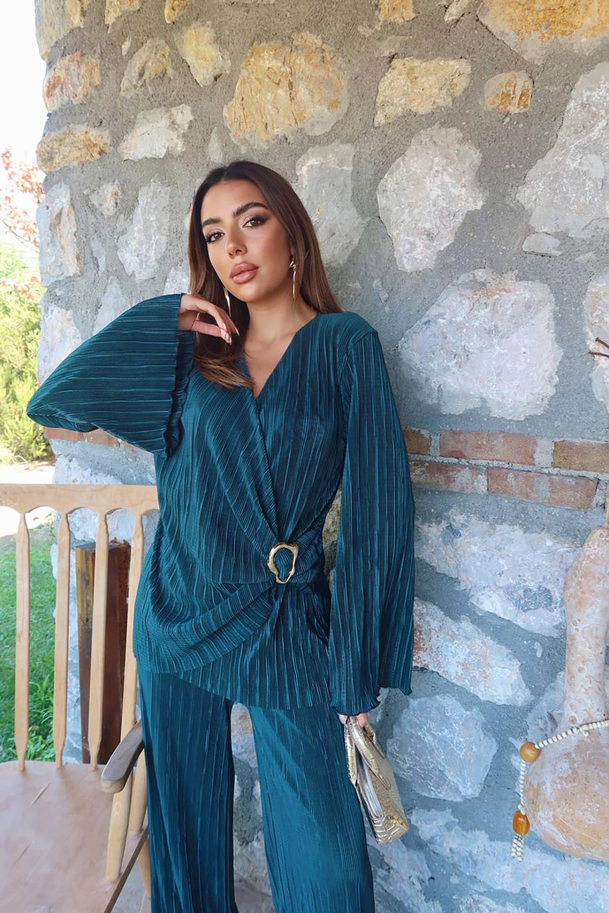 Wholesale Emerald Buckle Detailed Pleated Suit