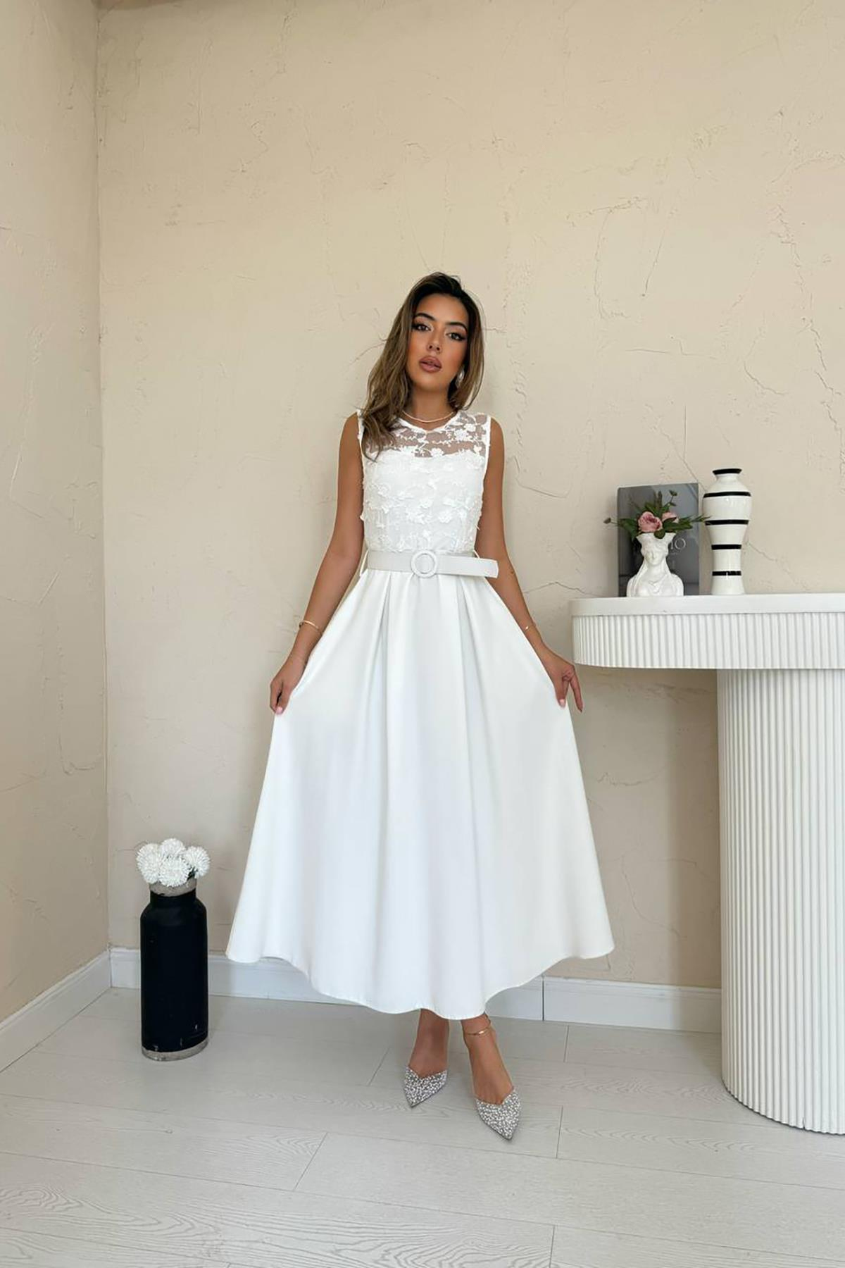 Оптовая Продажа Белое Кружевное Платье С Поясом Спереди