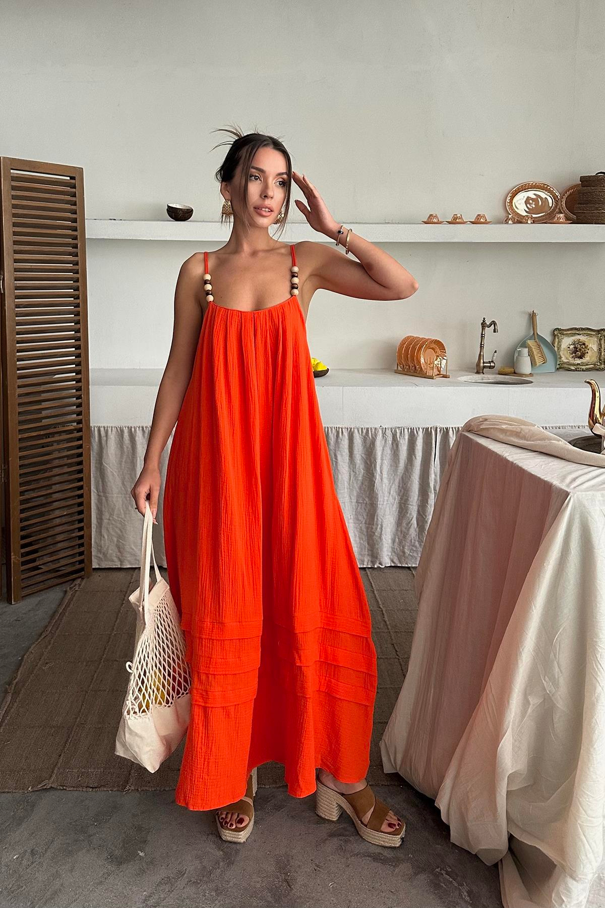 Оранжевое платье из муслина на бретельках оптом (8729)