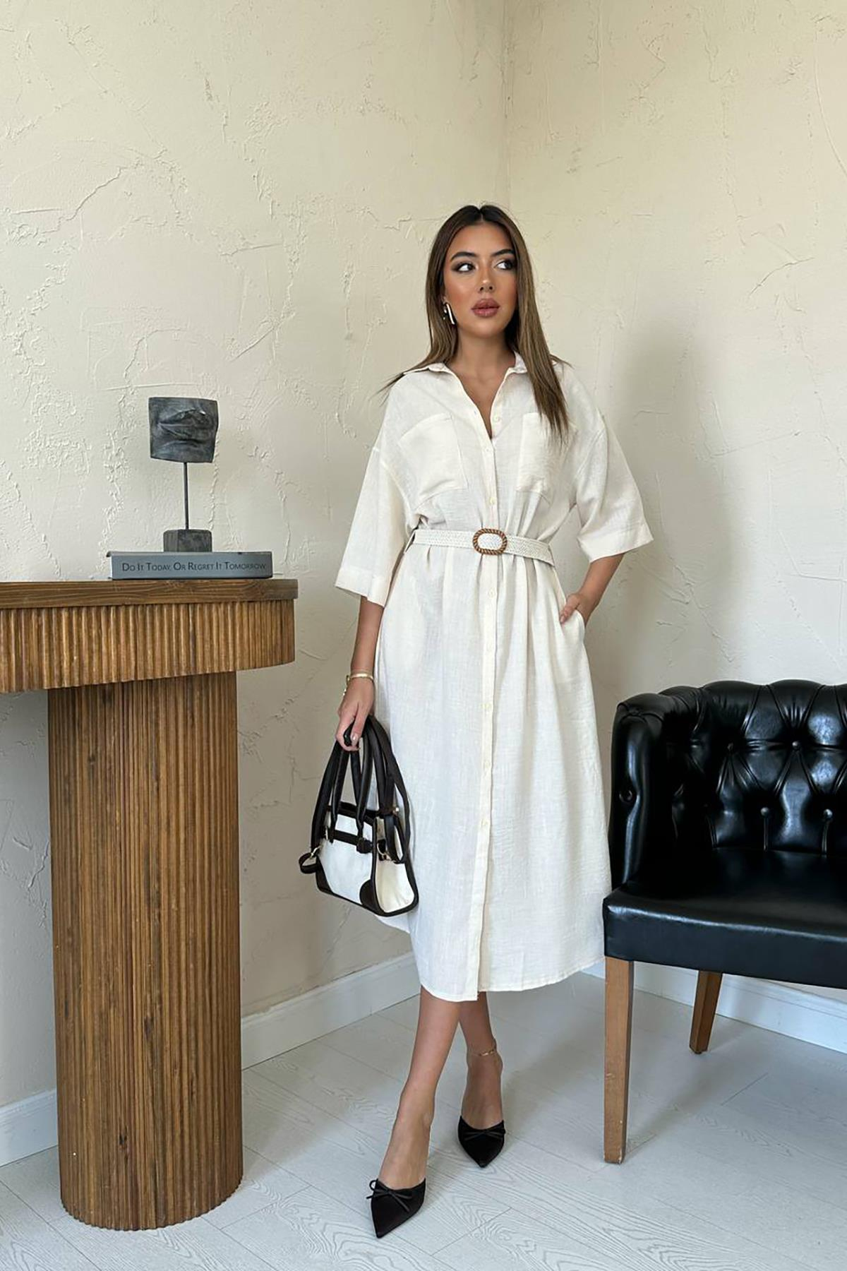 Оптовое черное платье с поясом Оптовое бежевое платье с поясом