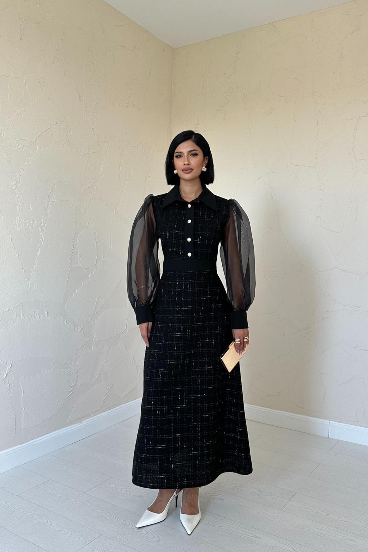 Оптовая продажа черного органзового платья с рукавами