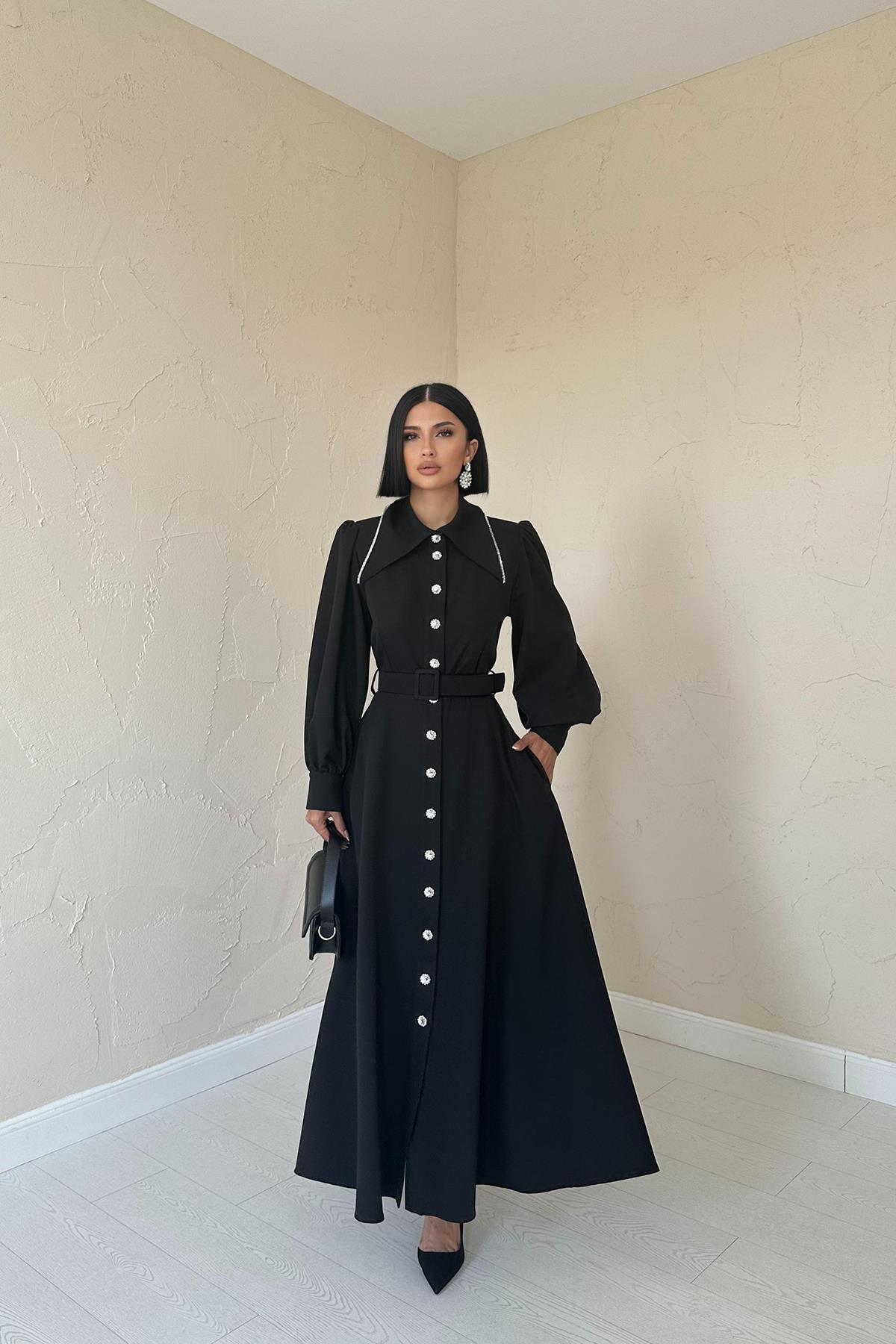 Оптовая продажа черного платья с подкладкой из камня