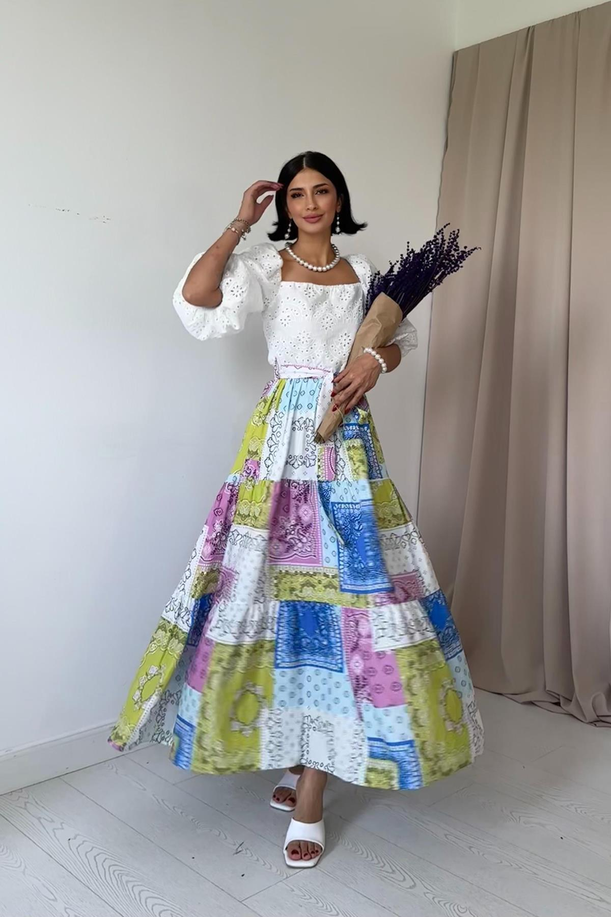 Оптовая продажа Синяя юбка Узорчатое вышитое платье