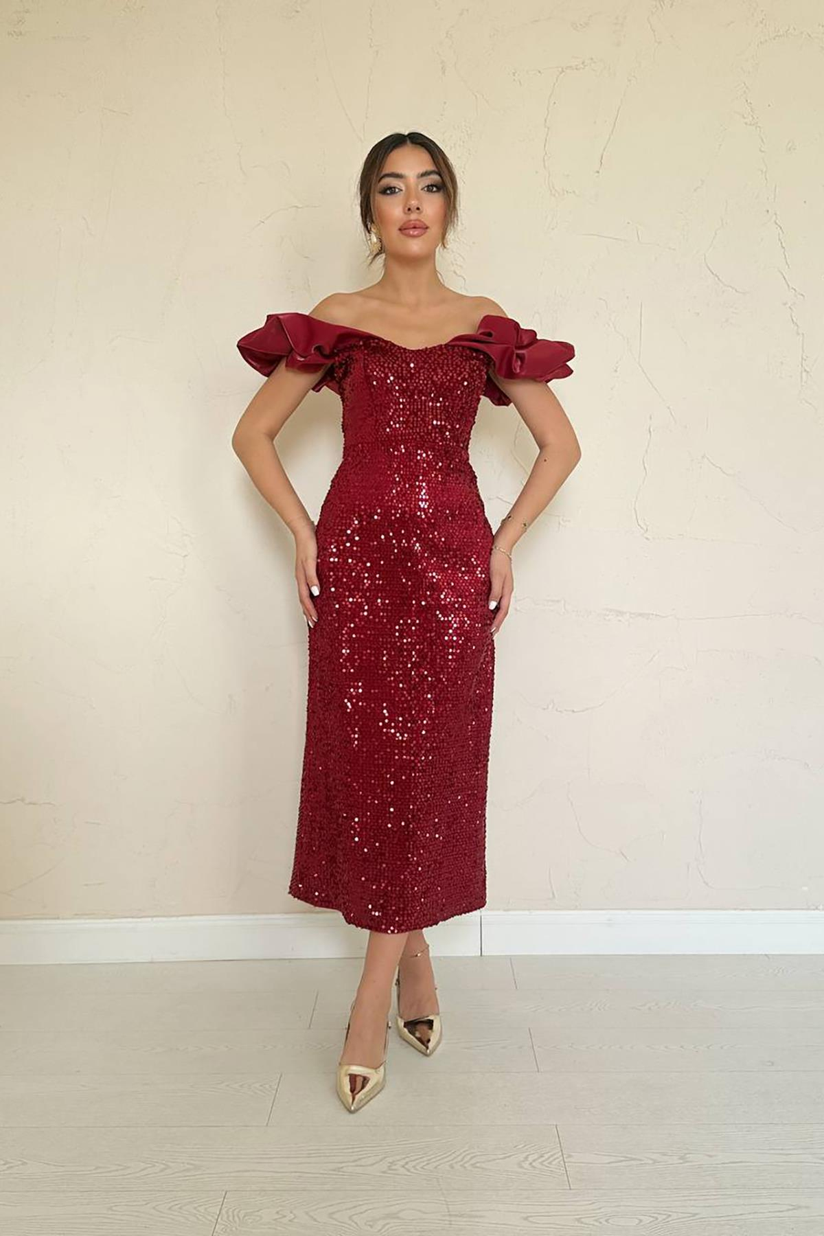 Платье без рукавов бордового цвета с пайетками оптом (8440)