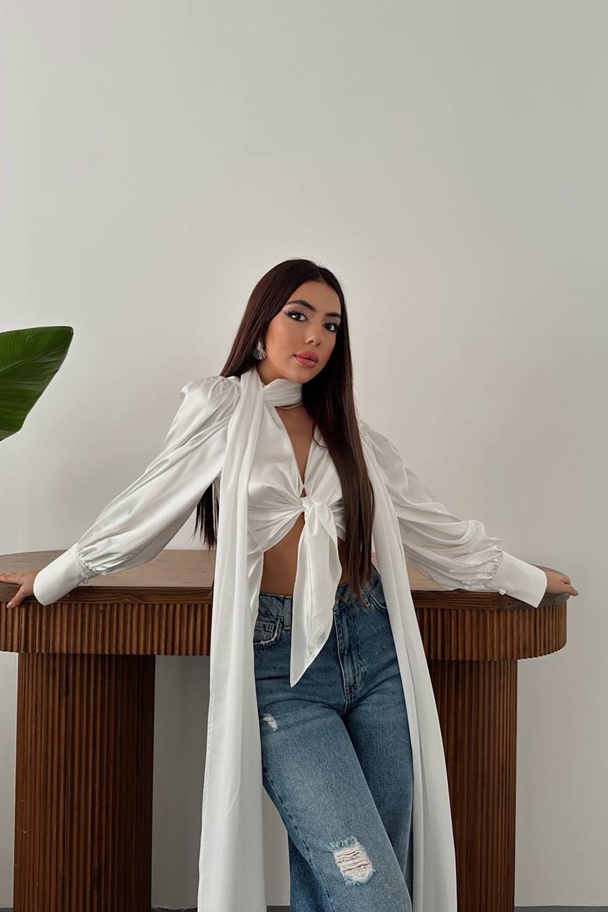 Оптовая продажа блузки цвета экрю с завязкой спереди