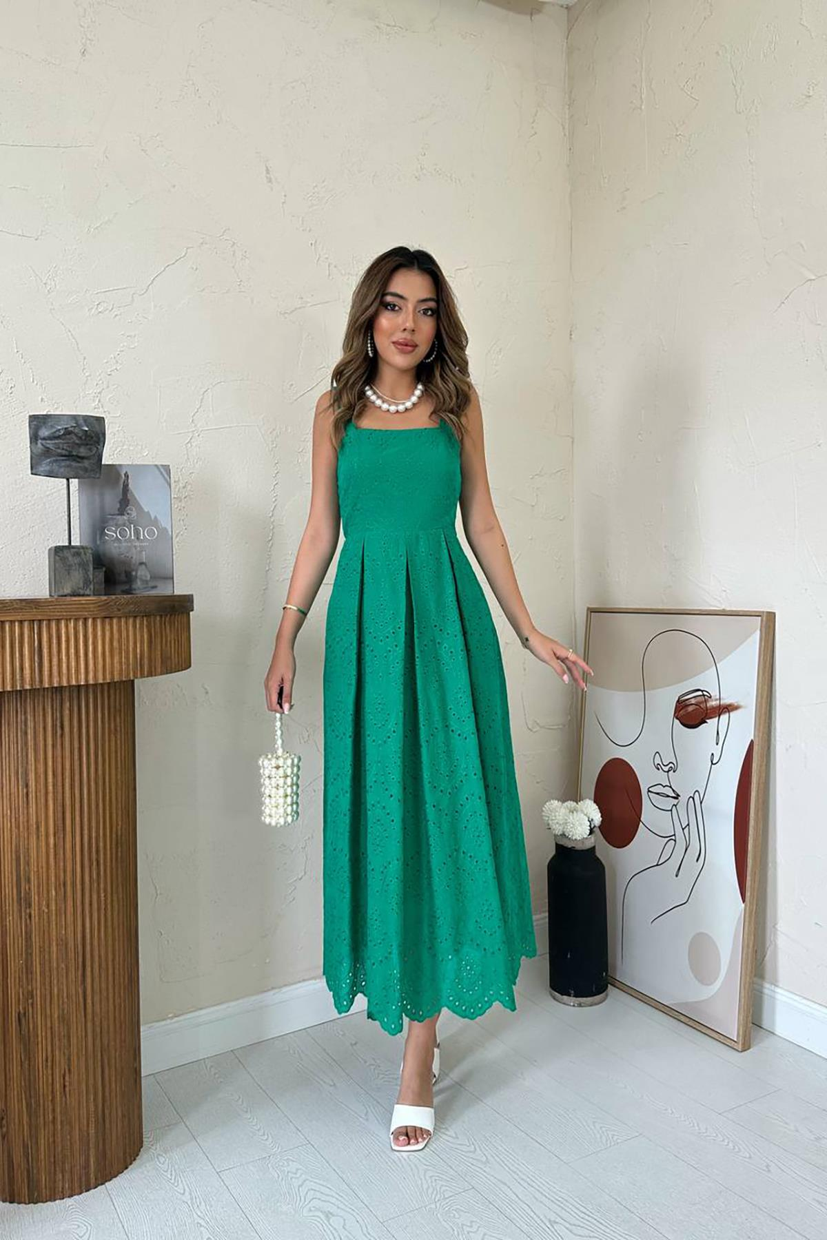 Оптовая продажа зеленого вышитого платья на бретелях (8054)