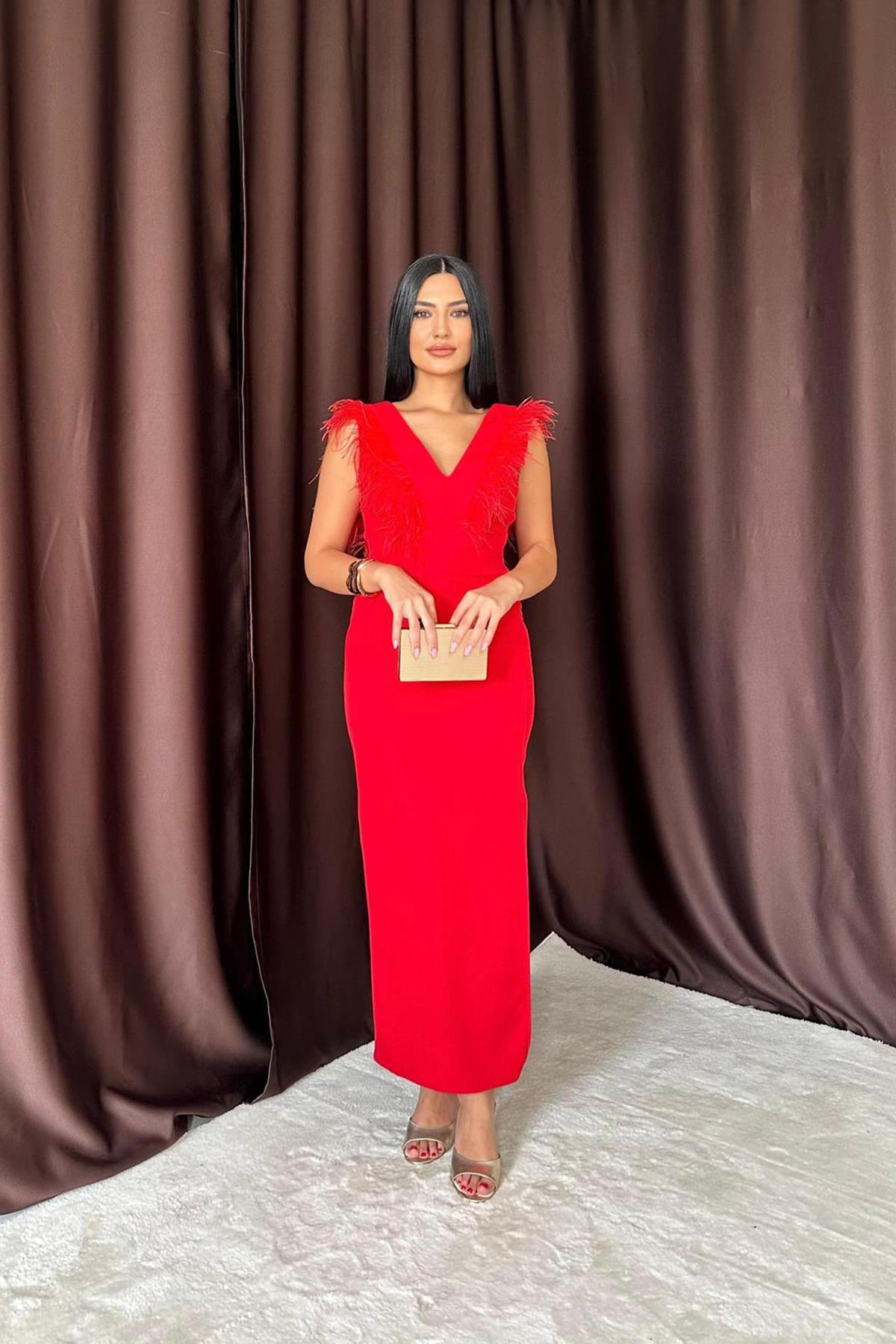 Оптовое красное платье с перьями и разрезом Оптовое черное платье с перьями и разрезом