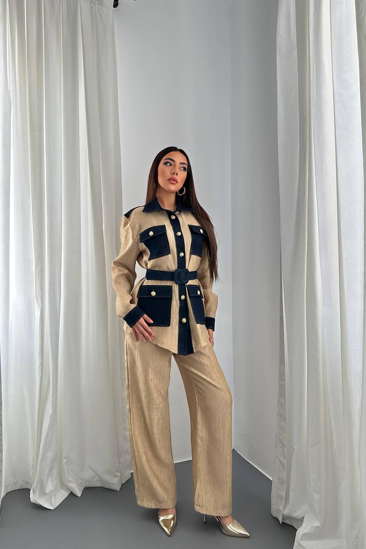 Wholesale Yellow Garnished Pocket Shirt and Trouser Set
