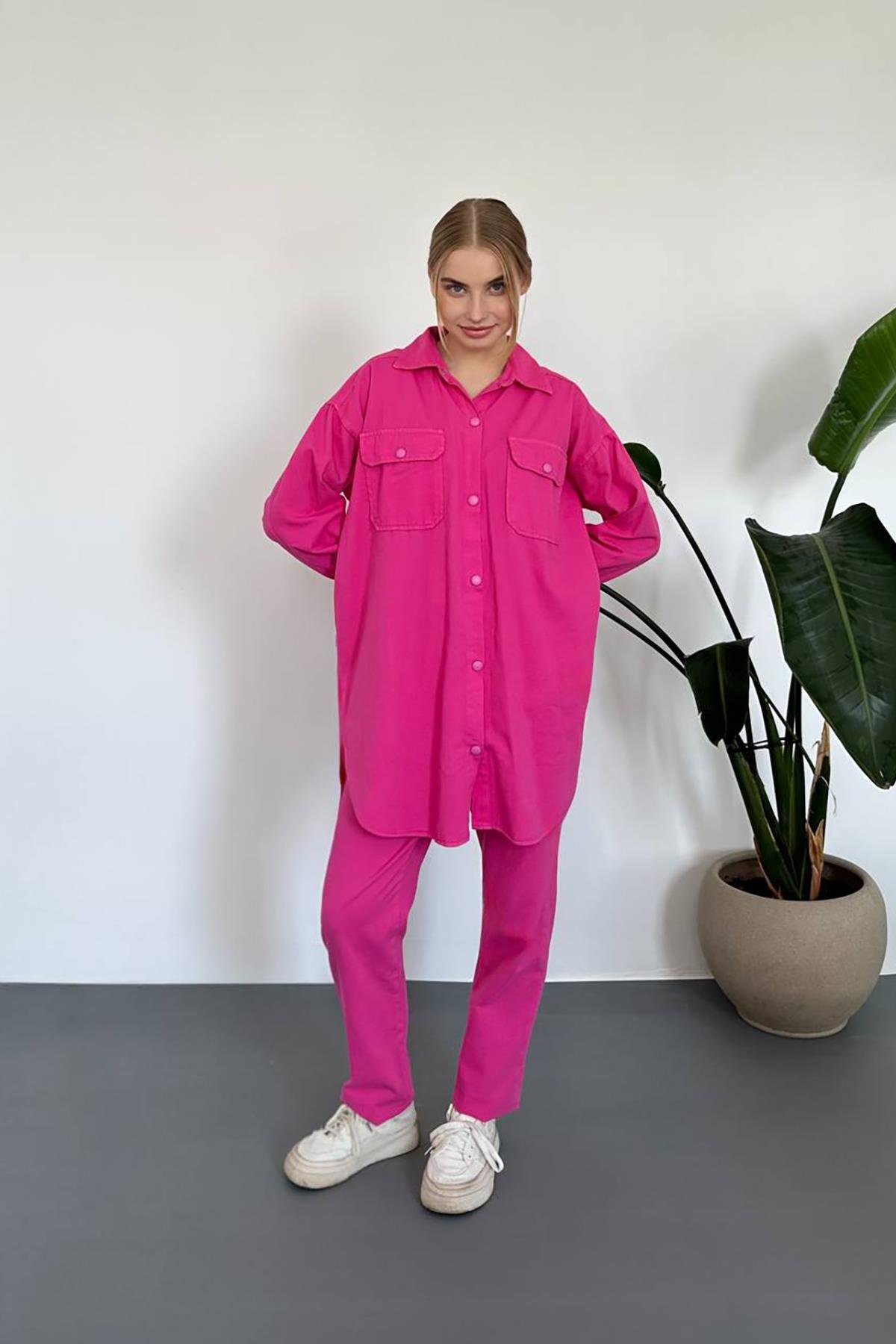 Toptan Fuşya Yıkamalı Gömlek ve Pantolon Takım